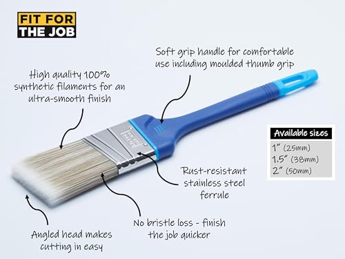 Fit For The Job 1 inch No Bristle Loss DIY Cutting In Paint Brush For A Smooth Finish Painting with Emulsion, Gloss and Satin Paints on Walls, Ceilings, Furniture, Wood & Metal, 1" 25mm