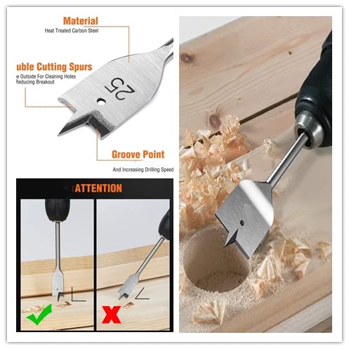 - igh quality wood drill: all spade drill bits are made of heat-treated carbon steel for maximum durability. High density material with good durability and high impact resistance. The polished tip has a high wear resistance that provides a long service life