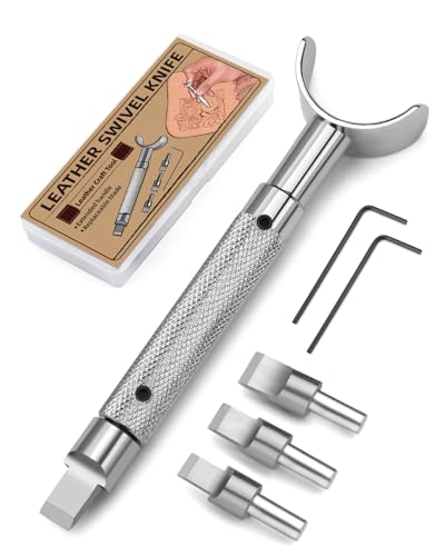 - Thoughtful Detail Design: This swivel knife for leather tooling has a 360° rotating design, which is flexible to use and easy to control various carving angles. It is suitable for deep carving and thick leather. With a non-slip handle, it is comfortable to hold and can be held for a long time. Both beginners and professional craftsmen can use this carving knife to create more delicate leather crafts