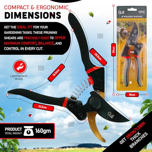 - ✅ Versatile Garden Tool – Whether trimming roses, bonsai, fruit trees, or hedges, this 8” pruner shears is a must-have for every home gardener or professional landscaper.