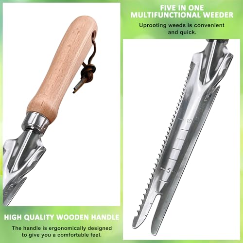 - ✅【Multipurpose Weeder】The weeding tools for garden combines functions such as sawing, opening, rooting, measuring, and shoveling.This garden weeder puller is not only used to remove deep-rooted weeds, but also very suitable for transplanting,digging,planting,sawing,shoveling and loosening soil. Suitable for your outdoor garden, flower bed, vegetable garden and indoor plants.