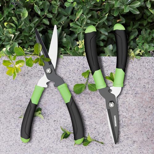 - 【High Quality Materials】GARDENWORK hedge shears are made of SK5 alloy material,with sharp blades for smoother shearing and less damage to branches,wear-resistant and hard-resistant,longer lasting use