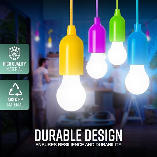 - DURABLE AND LONG-LASTING CONSTRUCTION: Crafted from high-quality ABS and PP materials, these battery powered light bulbs are built for reliable performance in any environment. Whether used as camp bulbs, battery operated hanging lights, or pull lights, they offer a sturdy and weather-resistant solution for both indoor and outdoor use.