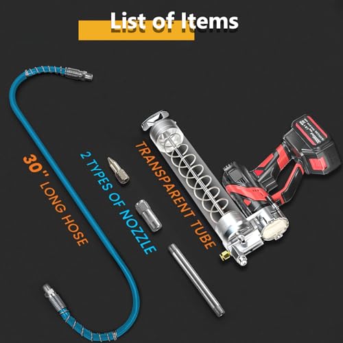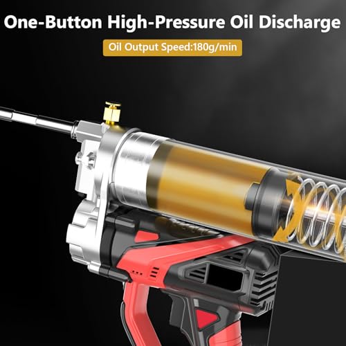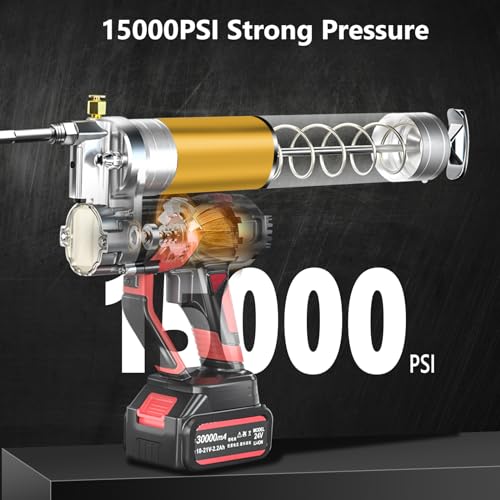 - Exceptional Power: Battery Grease Gun features an advanced brushless motor that can generate a maximum pressure of 15000 psi and dispense oil at a rate of up to 5.4 oz/min. This powerful combination effectively clears clogged lubrication fittings, ensuring smooth and efficient lubrication