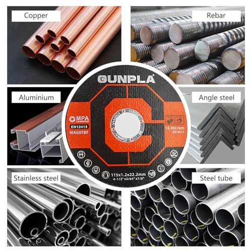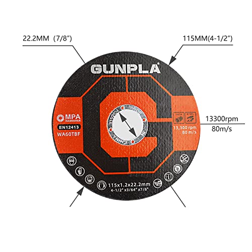 Gunpla Cut Off Wheels 5-Pieces Metal and Stainless Steel Cutting Discs, 115mm x 1.2mm x 22.2mm Thin Abrasive Blades Set for Angle Grinders, Metals, Iron Sheets