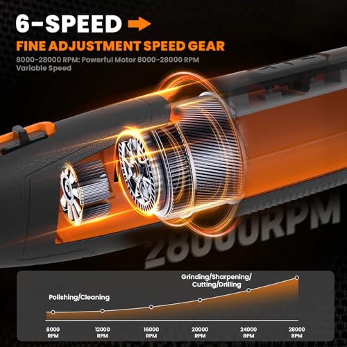 - 【Powerful Power – Cordless Rotary Tool】 HARDELL cordless rotary tool is equipped with a high-energy enhanced motor with a speed of up to 28000RPM, which is more powerful than the common 4V rotary tool with 18000RPM. It can easily handle the cutting, grinding, polishing and carving of various materials such as metal, wood, plastic, etc., meeting professional performance requirements!