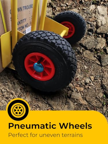 - Pneumatic Wheels : The Sack Trolley is equipped with 10" pneumatic wheels that ensure smooth movement on various terrains, including rough surfaces.