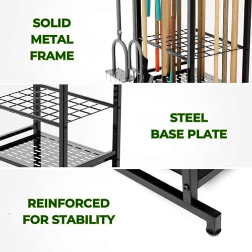 Heavy Duty Garden Tool Storage Rack, 50 Tool Capacity, Alloy Steel, Multi-Tier Shelving (Rack+Hooks)
