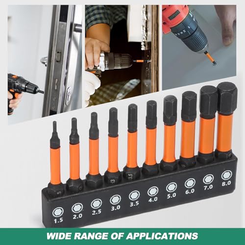 - Universal 1/4 Inch Hexagon Shank: Not only can you use allen wrench drill bit set on manual tools, but you can also easily insert them into any 1/4 inch hexagonal shank drill for use. Magnetic hex bits set length: 50 mm/2 inches.