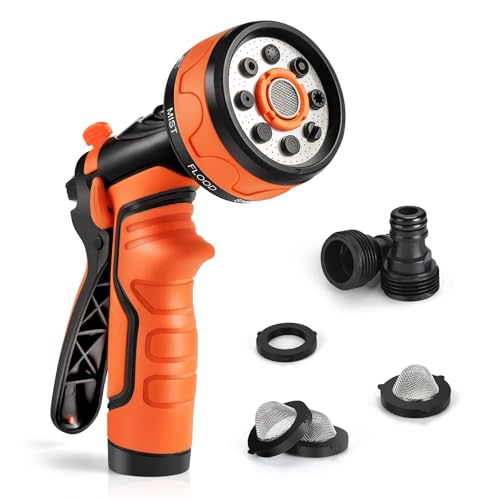 - This garden hose spray gun, featuring 8 adjustable patterns, is perfectly designed to cater to every watering need. With options ranging from a fine mist to a moderate spray and a powerful jet stream, you can easily select the desired mode by rotating the hose nozzle's head.