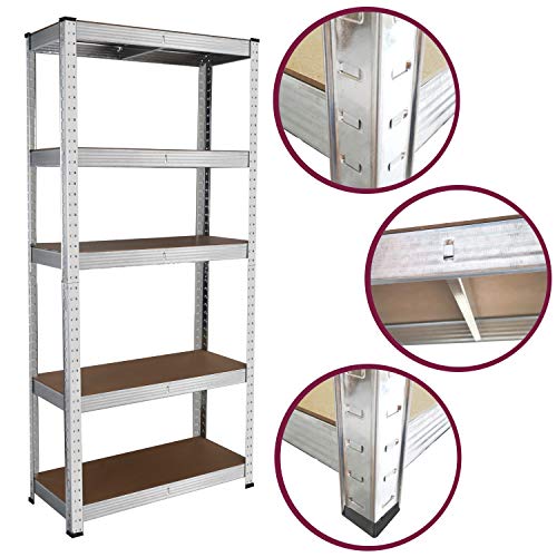 - Heavy Duty Construction – This garage shelving unit is made from a heavy duty steel frame and comes with 5 thick MDF shelves.