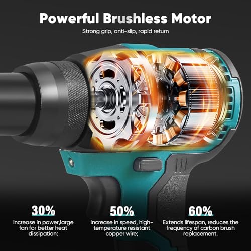 • 【POWERFUL BRUSHLESS MOTOR】Equipped with a high-quality brushless motor, our rivet gun reduces heat generation and battery consumption for efficient and long-lasting performance. The motor provides up to 10KN of pulling force, boosting operational efficiency by 50% in high-temperature conditions. Say goodbye to carbon brushes with the brushless motor that offers a lifespan of up to 10 years.