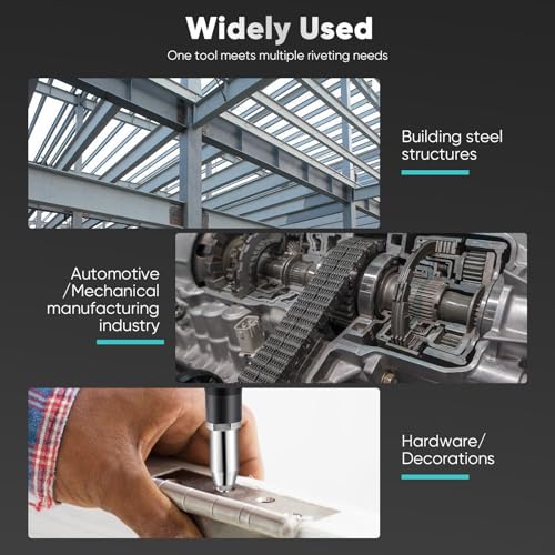 • 【VERSATILE APPLICATIONS】Complete with 20 rivets, this automatic rivet gun kit is ideal for a wide range of construction and maintenance tasks, from fastening doors and windows to securing automotive sheet metal. Connect various materials with ease and precision. NOTE: Suitable for aluminum rivets only.