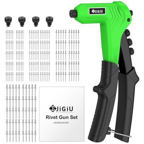 - 【Curved Ergonomic Design】8-inch ergonomic curved handle design, JiGiU rivet gun allows a single hand to make work easier and save more than 30% effort. And anti slip handle ensures comfortable grip and reduces pressure during use