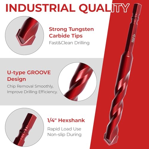 • Premium Quality for Precision Drilling: Crafted with high-quality carbide tips, Keewaki’s hex shank masonry drill bits ensure long-lasting durability and exceptional performance when drilling through tough materials like concrete, brick, tile, and stone. Perfect for both professionals and DIY enthusiasts