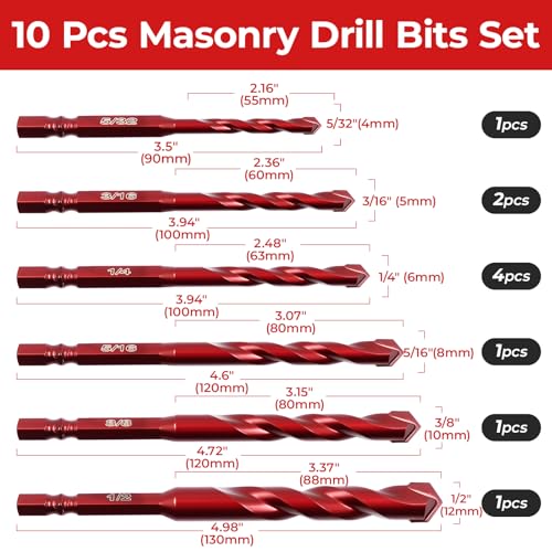 • Versatile 10-Piece Set for All Your Drilling Needs: This set includes 10 essential drill bits in sizes ranging from 4mm to 12mm, making it ideal for a wide range of applications. Whether you're working with concrete tools, masonry tools, or tile tools, this set is your go-to solution for a variety of projects.
