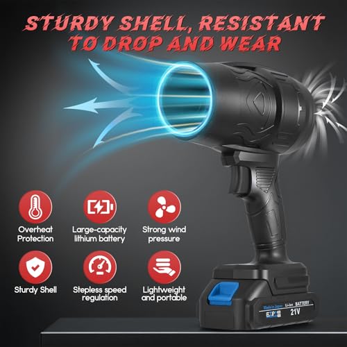- Powerful Turbo Technology: The lightweight air blower boasts advanced turbo technology, offering powerful performance with up to 38000RPM and a speed of 240 MPH. Ideal for efficiently cleaning different areas, from leaves in the yard to dust and debris in the garage.