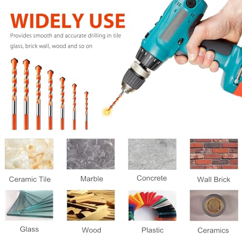 - Widely Used: The tile drill bits set can easily penetrates various materials, suitable for drilling ceramic tiles, concrete, bricks, wood, plastics, glass, masonry and other materials