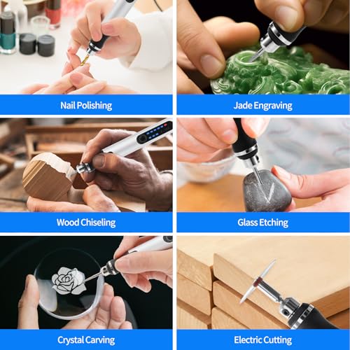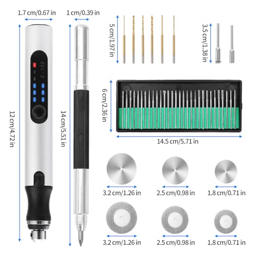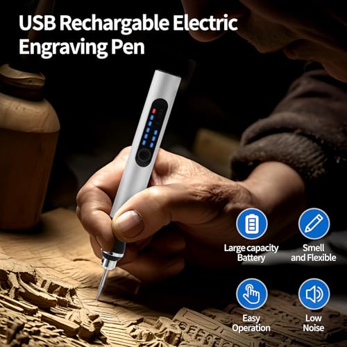 - Multi-Speed Precision Control – Designed with adjustable speed settings, this engraver pen adapts to different materials, providing the perfect balance of control and efficiency for delicate etching or deep carving. Comes with a set of engraving bits to accommodate different engraving needs, allowing for fine detailing, deep carving, polishing, and sanding in one tool.