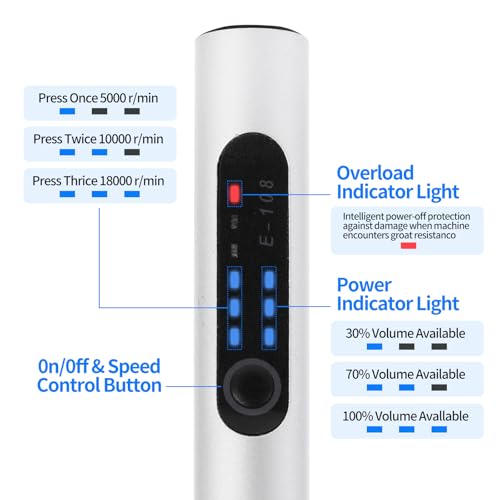 - Operation NOTE – The variable speed settings (5000-18000 RPM) allow you to engrave on different materials with ease and accuracy, whether for fine detailing or deep carving. While in use, the tool may become slightly warm, which is normal and does not affect performance. This ensures consistent and safe operation for various engraving tasks.
