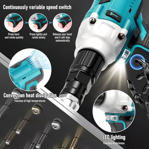 - 【Forward/Reverse Switch】This battery-powered rivet gun allows quick switching between forward and reverse modes with a simple one-touch switch. Stepless variable speed operation is more convenient. Insert rivets, press the trigger, and complete tasks effortlessly, enhancing productivity and versatility.