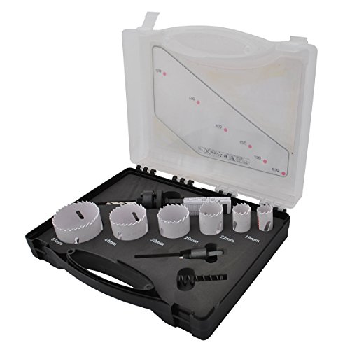 - 19mm, 22mm, 29mm, 38mm, 44mm, 57mm holesaws + 2 arbors