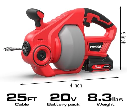 - Tired of dealing with clogged drains? Our 25-foot cordless drain snake makes cleaning quick and effortless—5 times faster than manual tools and 90% less effort. With up to 60 minutes of runtime on a single charge and a fully retractable cable in just 2 minutes, this powerful and durable tool is perfect for tackling common household clogs. Say goodbye to traditional methods and choose a drain snake that’s truly practical and efficient.