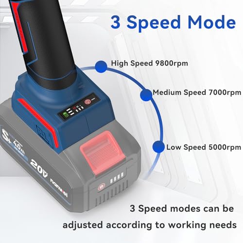 - 【3 Speed Mode】The rotation speed of the angle grinder can be selected from three stages: low speed of 5000rpm, medium speed of 7000rpm, and high speed of 9800rpm. With multible functions of grinding, cutting and polishing, our battery grinder will be a helpful assistant for your work.