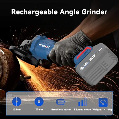 - 【Multi Purpose】 The 20V rechargeable angle grinder can be used for various scenarios such as metal and wood grinding, metal cutting, rust removal, coating peeling and surface grinding. Cordless design, no location selection, so you can work freely.