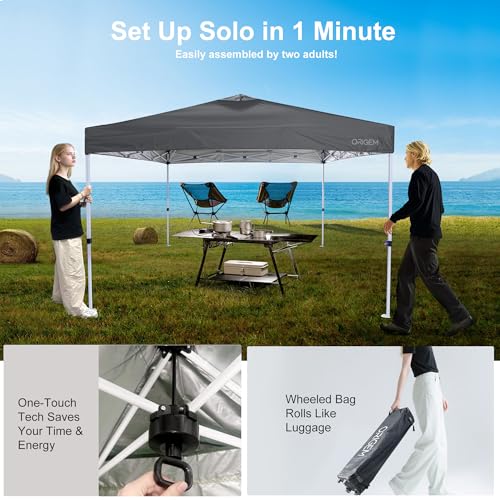 - Instant One-Touch Setup & Wheeled Storage Bag Effortlessly open and pack up this pop-up gazebo with one-touch technology—no tools required! The wheeled carry bag with reinforced handles glides smoothly, making transport effortless even for solo users