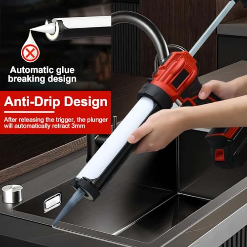 - Anti-drip Function Design: The caulking gun electric has an anti-drip function, when you release the trigger, it will automatically retract the plunger to prevent any dripping or spilling. This design can prevent your clothes from getting dirty during work and facilitate cleaning afterwards. It is very suitable for both home DIY enthusiasts and professional workers.