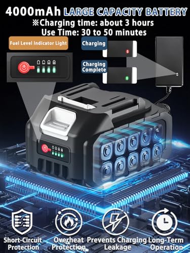 - High-Capacity Battery-The RayShine Cordless Power Washer features a powerful 21V 4.0Ah battery, delivering up to 40 minutes of uninterrupted cleaning on a single charge. Tackle tough tasks with consistent, reliable performance wherever you need it.