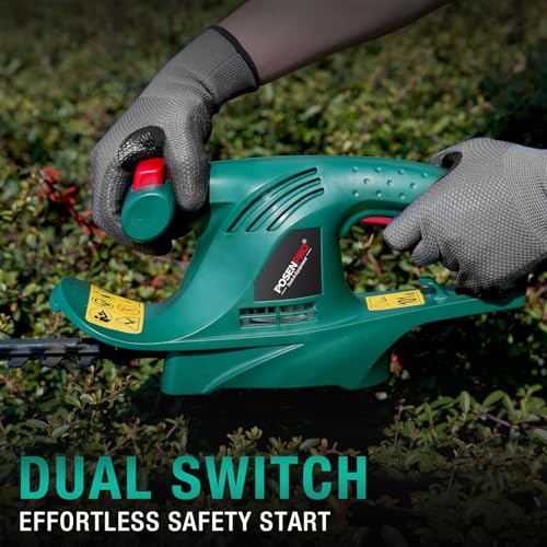 • 🍃【SAFETY PROTECTION】Always operate the Hedge Trimmer with eye and hand protection. This Hedge Trimmer is electric powered and does not require fuel to operate; Equipped with a blade cover this bush trimmer also uses a 2 safety trigger switch system