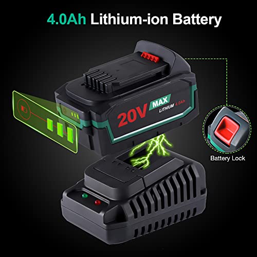 - Fast Charger & Long-lasting Battery: Cordless Angle Grinder is equipped with a 20V 4.0Ah large-capacity lithium battery and a fast charger that has been tested for multiple charging cycles which means grinders power tools full day of operation is perfectly feasible. The cordless angle grinder can work steadily for a long time. You can recharge the battery using a fast charger in 1-2 hours. Don't worry about running out of power at work.