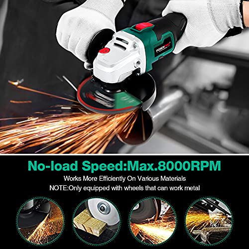 - High-Performance Angle Grinder: POSENPRO spends countless tests, research, and rigorous production to ensure that each motor and battery provides strong and stable power. The highest no-load speed of a wireless angle grinder can reach 8000 RPM. An excellent heat dissipation system helps users become more stable and faster in completing the project.