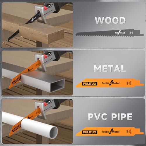 - 【Variable Speed & Adjustable Cutting Depth】PULITUO 20V Cordless Reciprocating Saws equipped with 0-3000rpm Variable speed adjustment for different scenarios, fast cutting speed one time forming.Stroke 20mm, three cutting methods, conventional cutting, insert cutting, flat cutting.