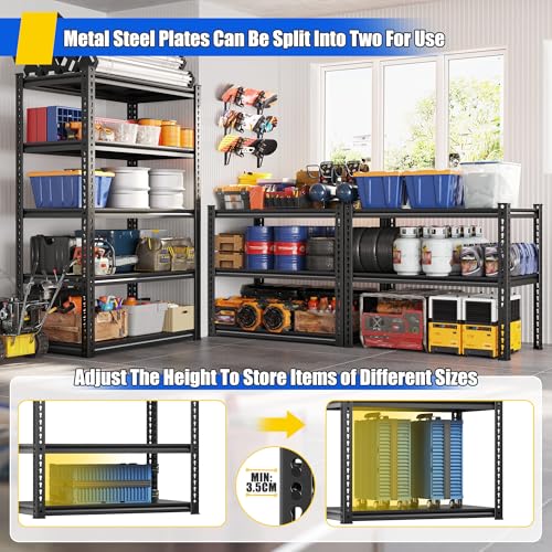- FULLY ADJUSTABLE & VERSATILE CONFIGURATION: Customize your storage to fit any need. Adjustable shelf heights accommodate items of all sizes. Uniquely, you can assemble it as one towering 5-tier unit, split it into two separate free-standing racks (3-tier + 2-tier), or even configure it into a corner unit or workbench. One solution, endless possibilities