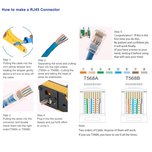 - PASS THROUGH DESIGN – Pass Through sturcture is designed for pass through rj45 connectors, the built in baldes will cut the extra wires and crimp the connectors at the same time that will let the wiring work easier, improving the success rate and save much time during work