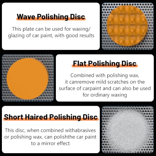 - 3 POLISHING PADS: This cordless car polisher comes with 3 waxing pads, making it easy to complete a variety of polishing tasks. These include a wavy sponge polishing pad, a flat sponge polishing pad and a short-hair polishing pad. The short-hair polishing pad can clean & enhance the gloss of various coatings, for waxing, glass polishing and enamel sealing. The sponge pad is suitable for polishing rough surfaces and small areas, and ensures better when used with polishing paste or polishing power