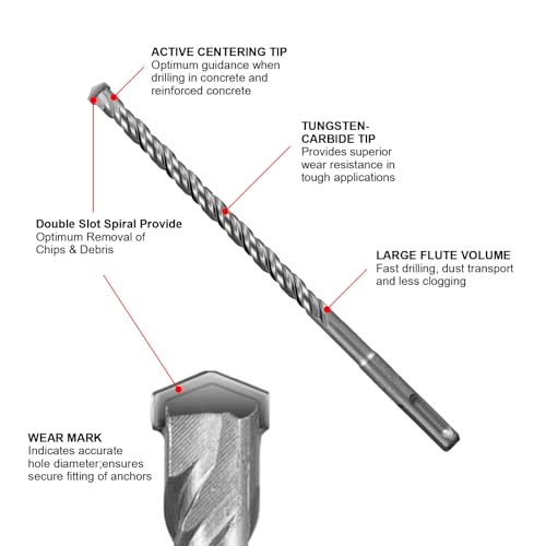 - HAMMER DRILL BIT – This high performance drill bit features a double flute spiral for efficient waste removal, the tungsten carbide tip of this drill bit head is tougher, perfect for extreme loads