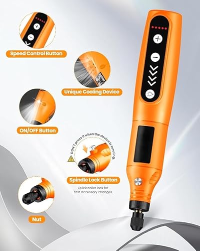 - 【5 Adjustable Speed Settings】 With 5 variable speeds (5000/8000/11000/14000/18000 RPM), you can easily tailor the tool’s performance to different tasks. From slow, precise sanding to faster cutting or polishing, this tool offers enhanced control—great for beginners and pros alike.