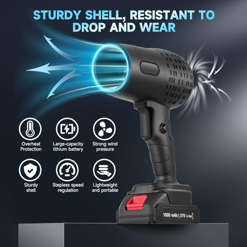 - Turbo Technology for Powerful Cleaning: Experience the advanced turbo technology of our lightweight air blower, capable of reaching speeds of up to 38000RPM and 240 MPH. This powerful performance allows for efficient cleaning of various target areas, from leaves in the yard to dust and debris in the garage.