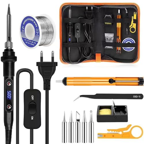 - 𝐏𝐫𝐨𝐟𝐞𝐬𝐬𝐢𝐨𝐧𝐚𝐥 𝐒𝐨𝐥𝐝𝐞𝐫𝐢𝐧𝐠 𝐊𝐢𝐭: Complete solder kit includes: 𝟴𝟬𝗪 𝘀𝗼𝗹𝗱𝗲𝗿𝗶𝗻𝗴 𝗶𝗿𝗼𝗻𝘀, solder wire, 5 soldering tips, desoldering pump, wire stripper, stand, tweezers, and storage bag – providing a comprehensive solution for all soldering needs