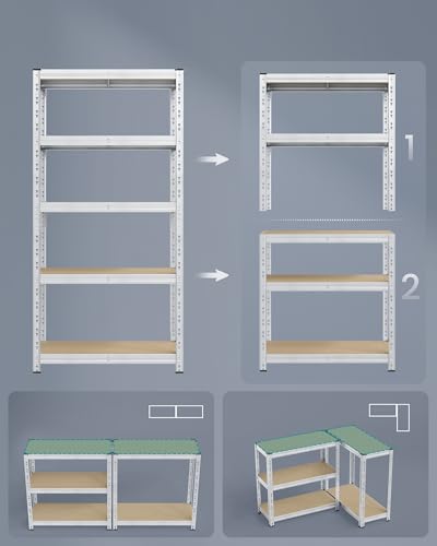 - Dividable Design: Each rack can be divided into 2 smaller shelves to meet your different needs. Arrange them side by side, in an L-shape, or separately in different rooms as needed