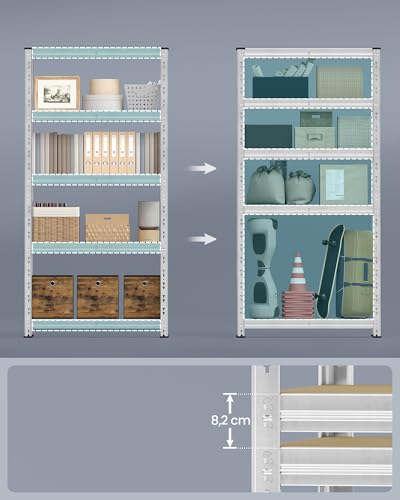 - Adjustable Shelves: Each shelf is adjustable in 8.2 cm increments, allowing you to organize and store items of various sizes, from storage boxes to sports equipment