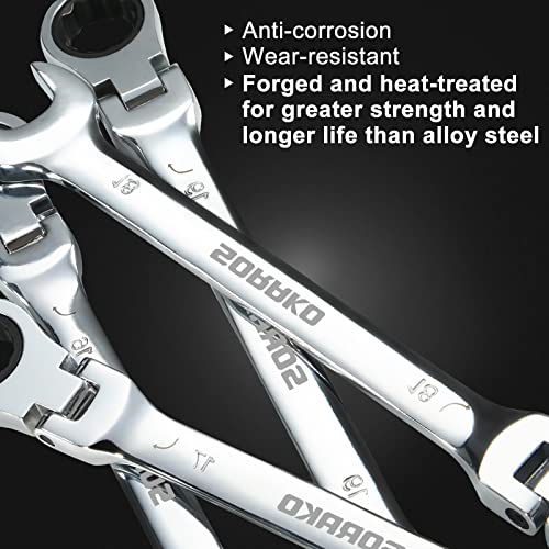 • Strong Premium Quality: 12 Piece Articulated Ratchet Combination Wrench Set, heat forged from industrial grade chrome vanadium steel with high hardness, corrosion resistance and long life. Spanner ends provide reliable torque to tighten or loosen bolts without rounding, the extended grip can save your effort while providing comfort. Flat ratchet wrench with matte surface treatment, effective anti-fingerprint.