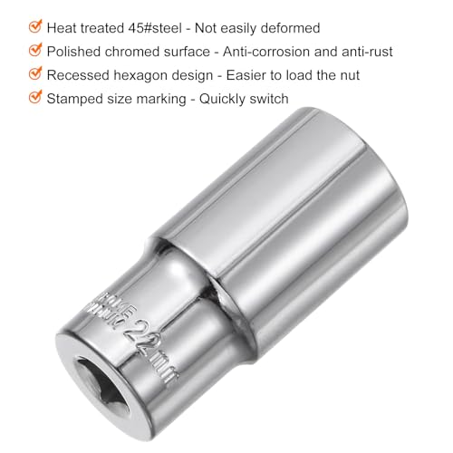 sourcing map 6-Point Socket 3/8" Drive 22mm Deep 2.52" Length 45# Steel Metric Square Drive Sockets Polishing Chromed Sockets for Car Repair Mechanical Maintenance Home Use