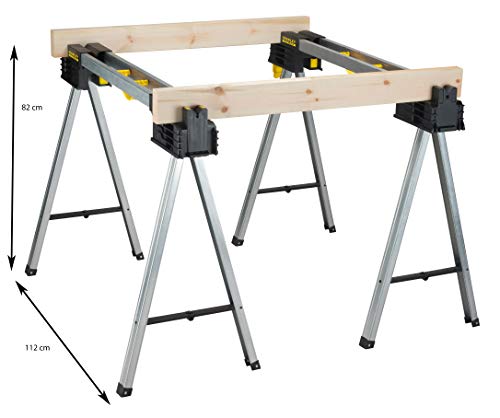 - COMPACT AND PORTABLE: Equipped with integral carry handles, this pair of sawhorses can be locked together and carried for easy transport on-the-go.