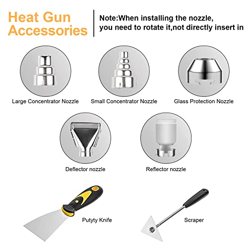 - 【Four Nozzle Fittings & Two Spatulas】The deflector nozzle directs the narrow heat pattern to the work surface; the two concentrator nozzles direct the concentrated heat flow to the work surface; and the reflector nozzle evenly disperses the heat flow over the entire work surface. Flat spatula and triangular spatula provide convenience for your work.