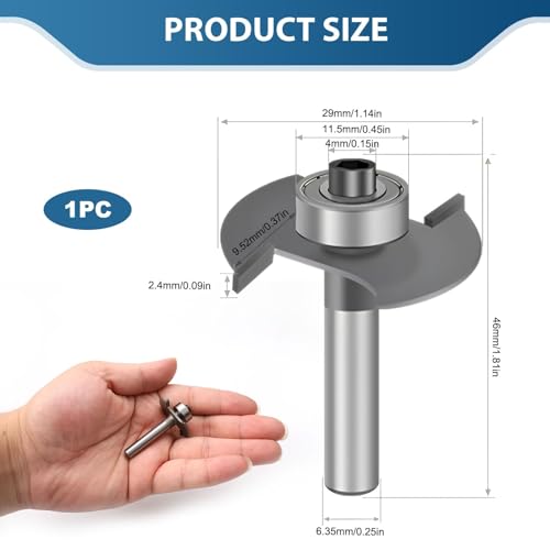 • Specifications: The diameter of T slot router bit knife handle is 1/4 (6.35mm), 2mm slot cutter router bit cutting depth is 2mm, Diameter is 29mm, Total length is 46mm. The biscuit jointer router bit bit is designed for T-slot joinery, ideal for campervan wall panels, locker doors, and table edging. The router slot cutter Creates clean, flush-fit grooves for concealed hinges and trim